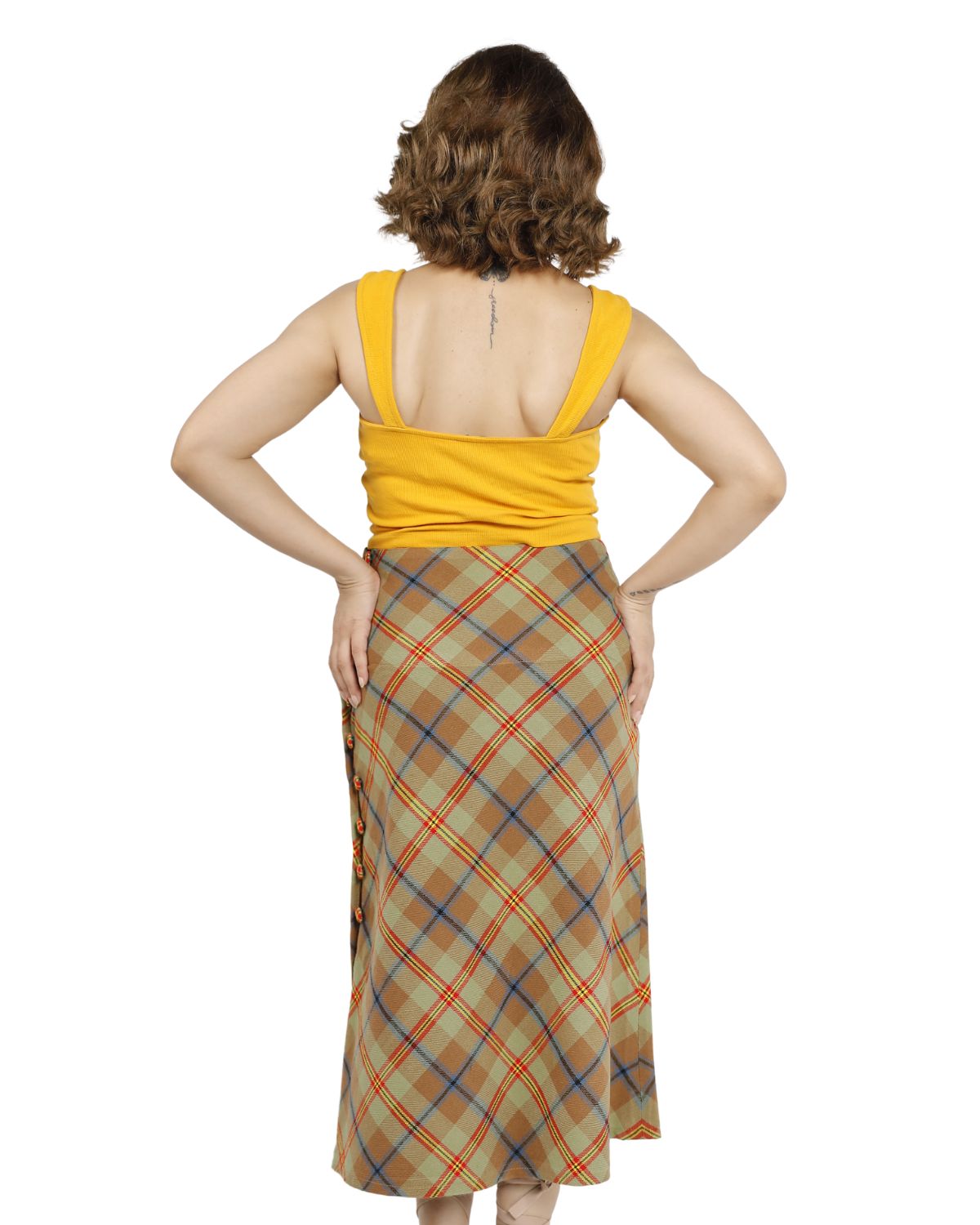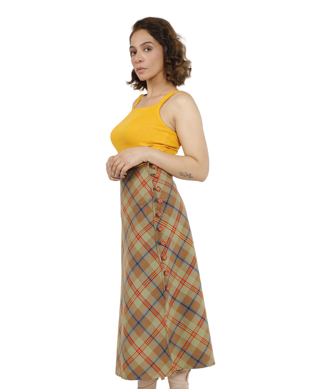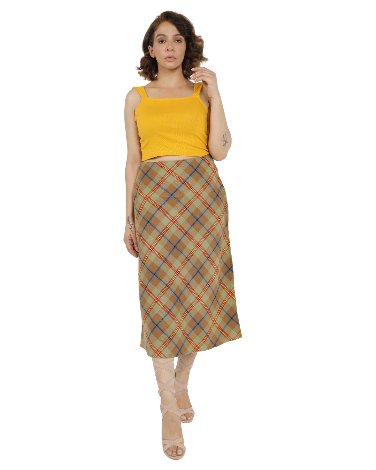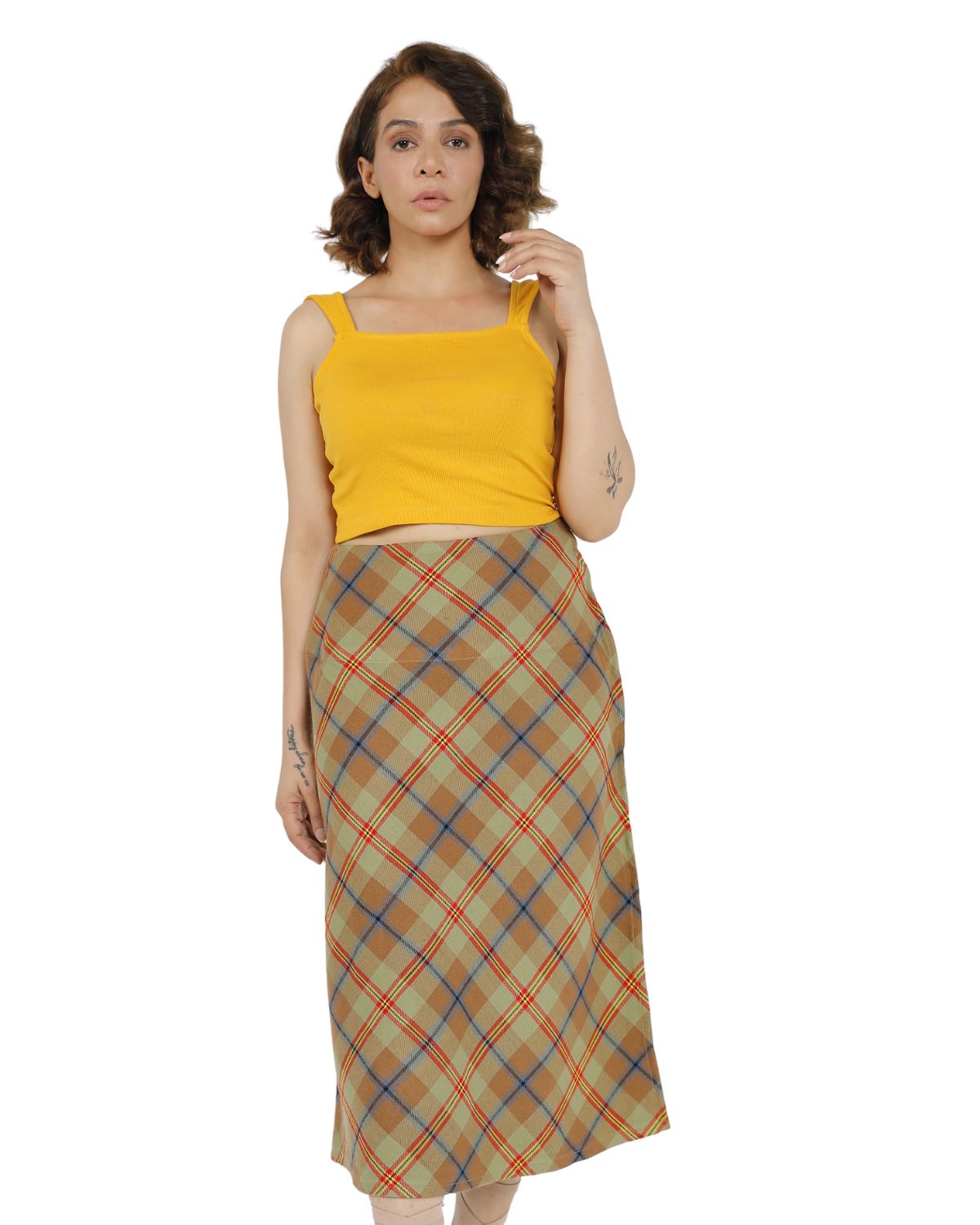 Step out with confidence and style in the Beige Plaid Midi Skirt, your perfect choice for comfort and effortless sophistication every day.