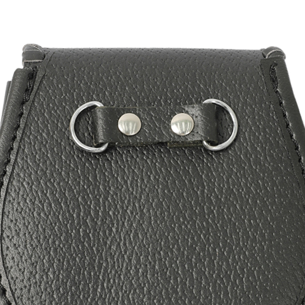 The Boys Black Cowhide Kilt Sporran Shaped Flap & Tassels offers a perfect blend of tradition and modern craftsmanship, making it a standout acceassory for young boys wearing kilts. The front panel, made from genuine black cowhide, provides a sleek, natural texture that adds a luxurious touch to the traditional sporran design. The shaped leather flap, crafted from black grained leather, features a unique shaped edge with hand-stitched detailing, giving the sporran an artisanal, handcrafted look.