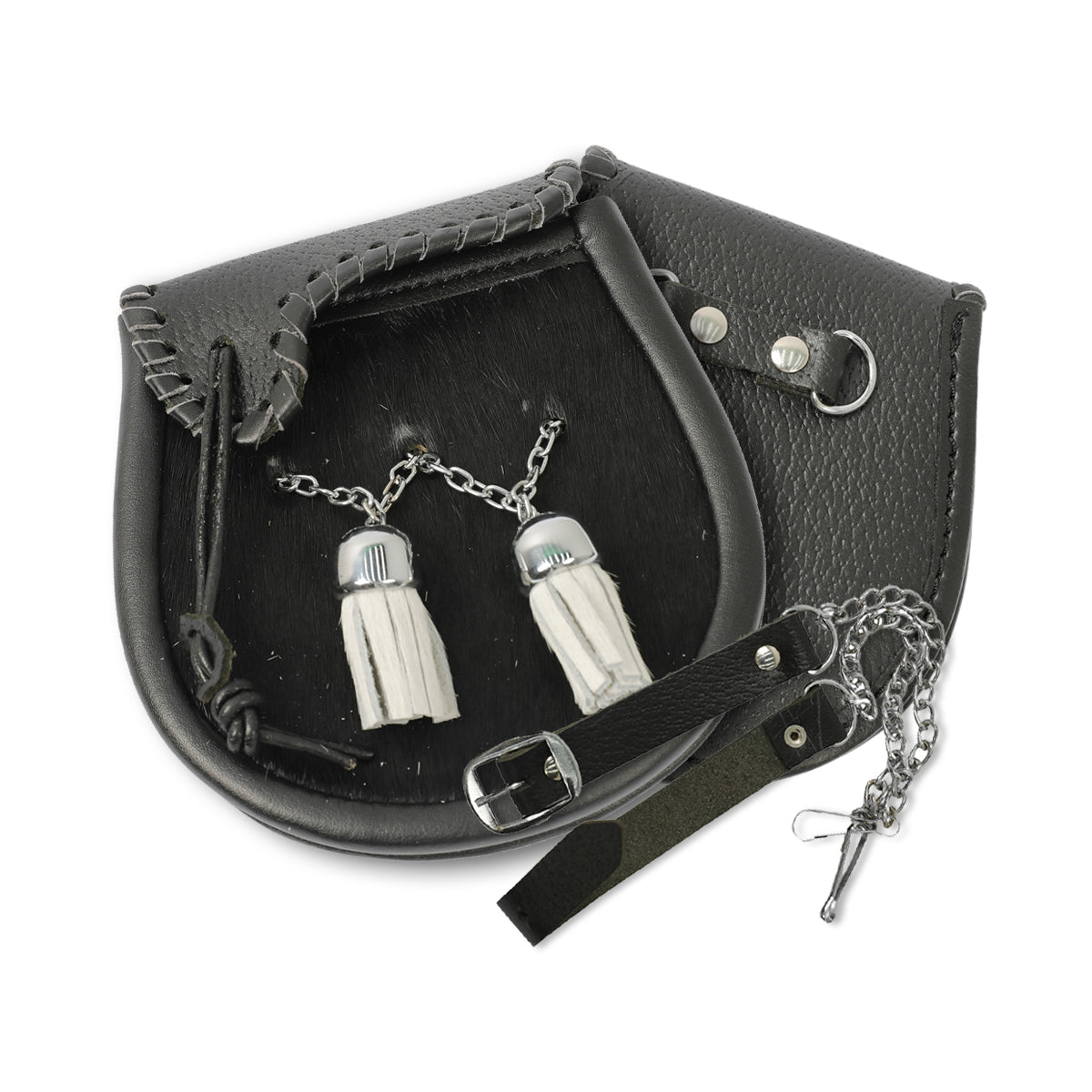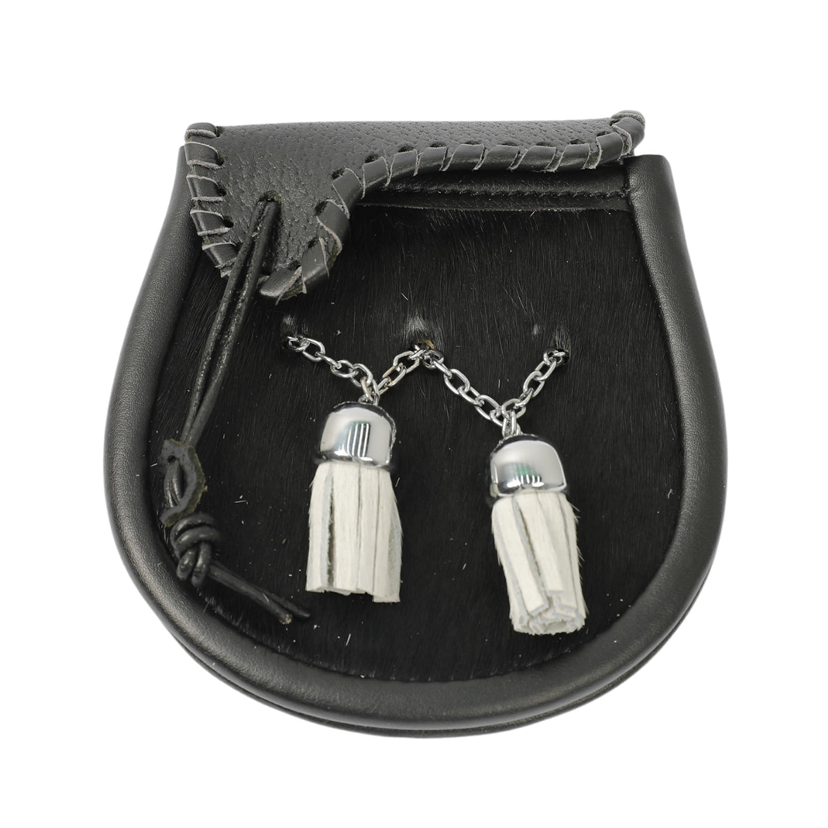 Boys Black Cowhide Kilt Sporran Shaped Flap & Tassels