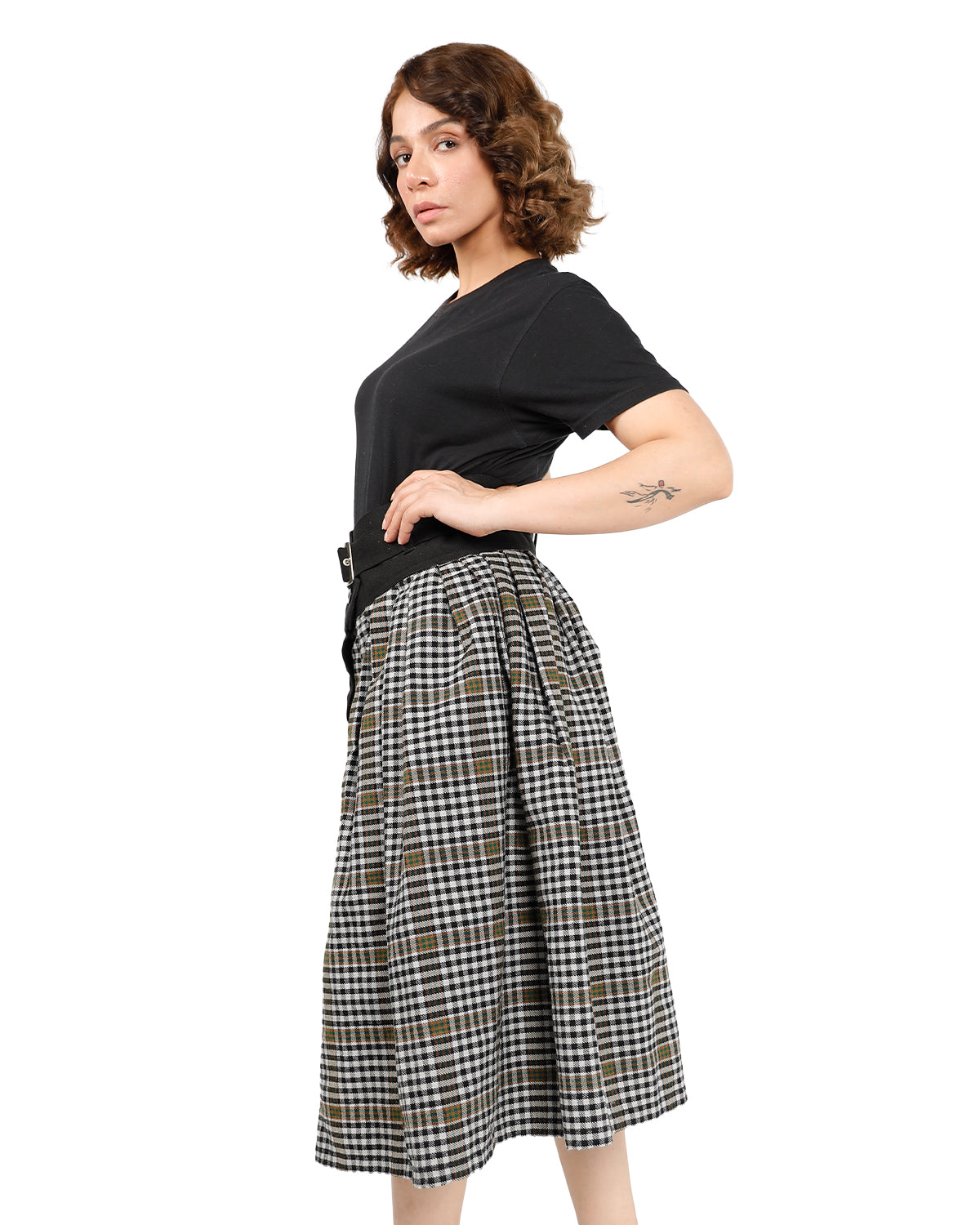 Turn heads wherever you go with this eye-catching plaid skirt that blends classic charm and modern style in every step.