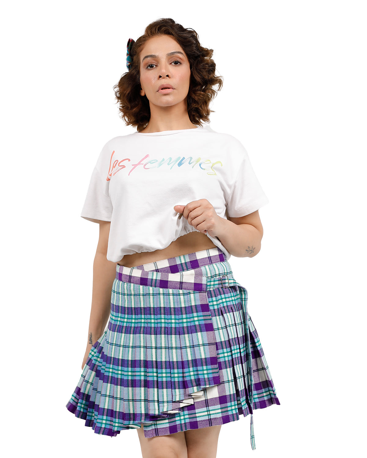 Turn heads with the Lassie Wrap Plaid Skirt, where timeless plaid meets modern style for an unbeatable everyday favorite.