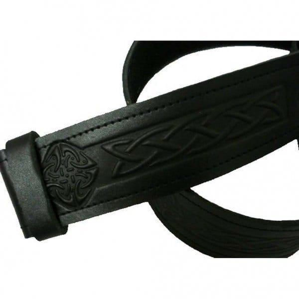 Leather Celtic Embossed Kilt Belt - Velcro Adjustable