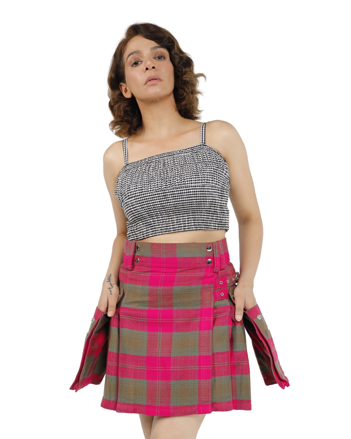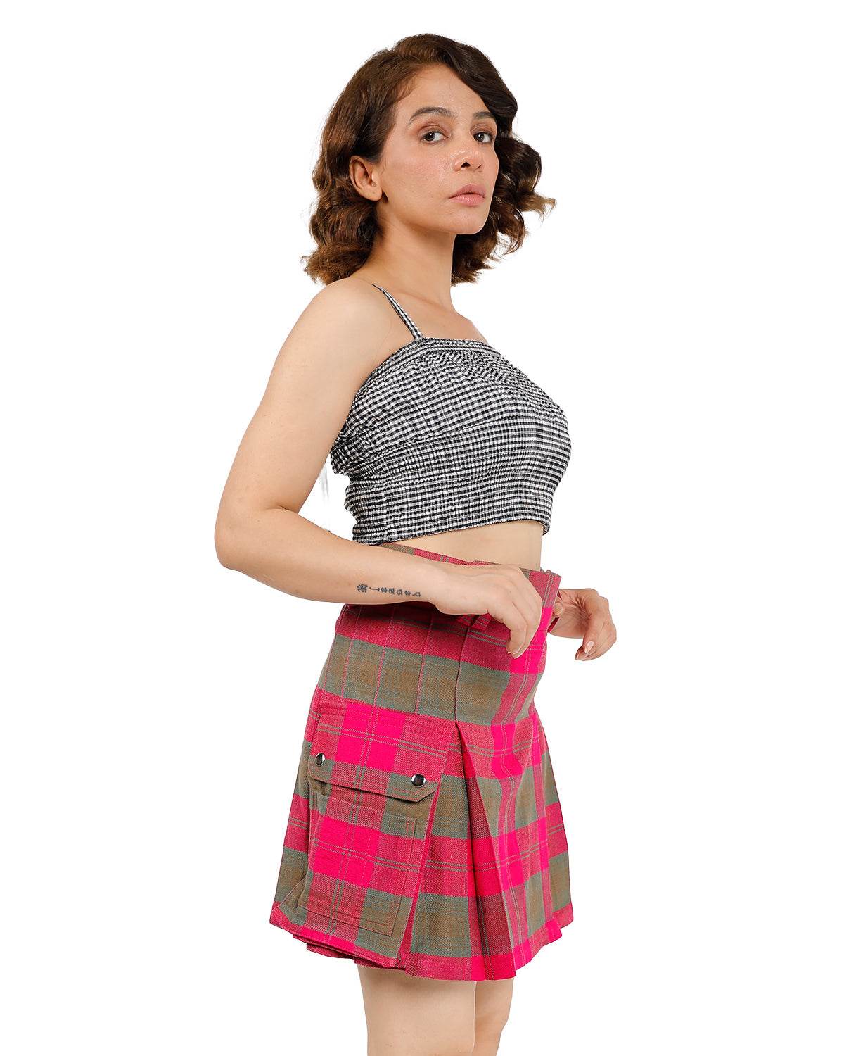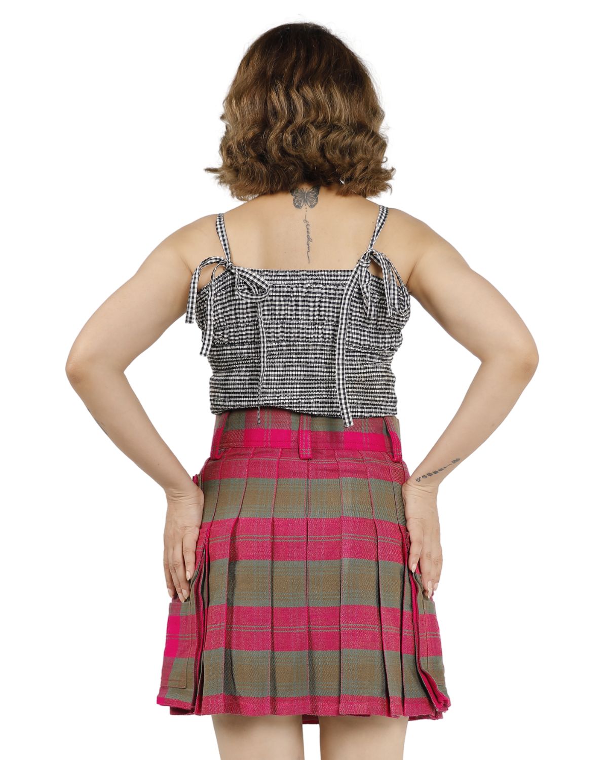 Step out in style and comfort with this Pleated Plaid Utility Mini Skirt—where modern design meets classic charm!